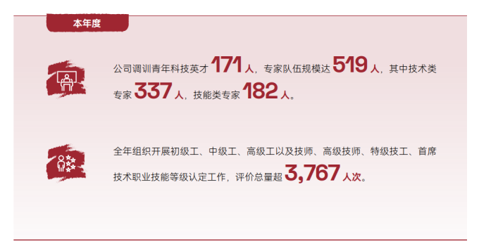 中國海油注重員工培養(yǎng)與發(fā)展,不斷深化教育、科技、人才一體化改革,圍繞人才興企戰(zhàn)略構(gòu)建多層次人才培養(yǎng)體系,制定系統(tǒng)化的培訓(xùn)計劃和明確的晉升通道,開展多種特色人才培養(yǎng)項目,助力員工實現(xiàn)職業(yè)發(fā)展與個人成長。